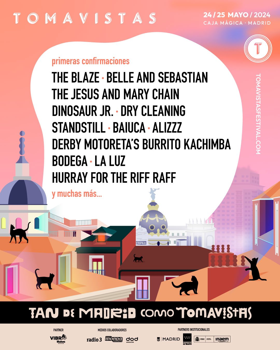 El festival madrileño Tomavistas regresa con novedades. El evento de la capital ha anunciado este martes los primeros nombres de su próxima edición, que se celebrará los días 24 y 25 de mayo en una nueva ubicación: la Caja Mágica de Madrid. The Blaze y Belle and Sebastian lideran las primeras confirmaciones, entre las que encontramos interesantísimos nombres como The Jesus and Mary Chain, Dinosaur Jr., Dry Cleaning o Alizzz.